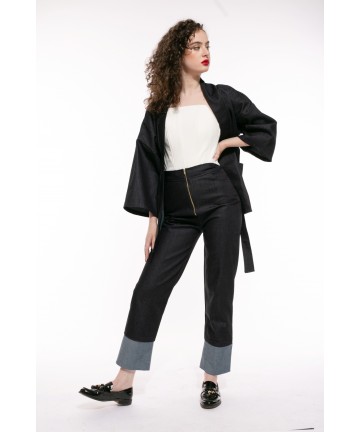 Poate fi purtat pe un pantalon, o fusta sau o rochie